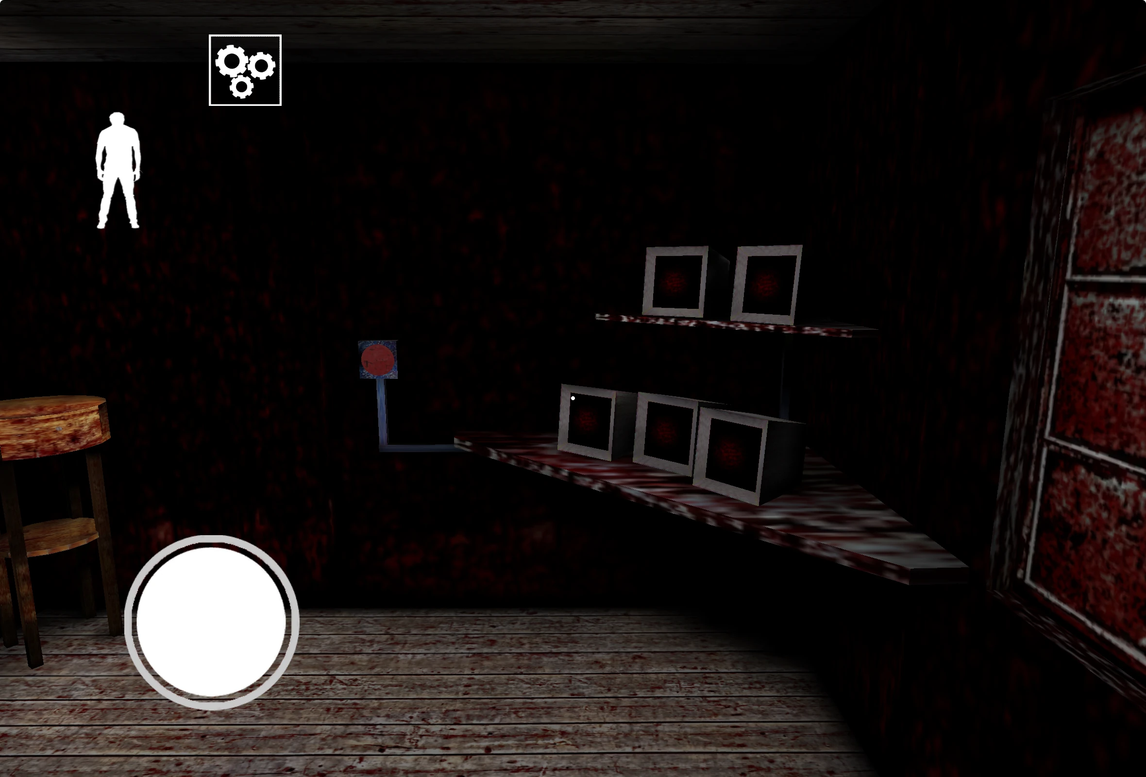 It is located on the 4th Floor and connects the Dining Room and the Attic. It is a rather small room with a single Drawer, a Ladder to access the Attic and two shelves with a series of Control Screens placed on them. The Security Key is required to open this room. A Red Button, on the left activates the Screens ; once pressed, they will show what the corresponding Cameras see, and make them rotate to have a better view of the room they're watching. You can manually change switch from screen to screen by pressing the second button, which is the square one, between the two shelves. You can use this to know the Grandparents' locations. Be aware that the Control Screens will not show all the rooms in the House, considering there are only 5 Cameras in total. Here is how they work:
